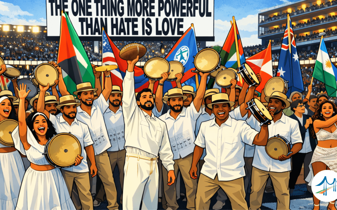 Illustration created with the assistance of AI, based on a conceptual recreation of Bad Bunny’s halftime show. Not affiliated with or endorsed by the NFL, Bad Bunny, or event organizers.